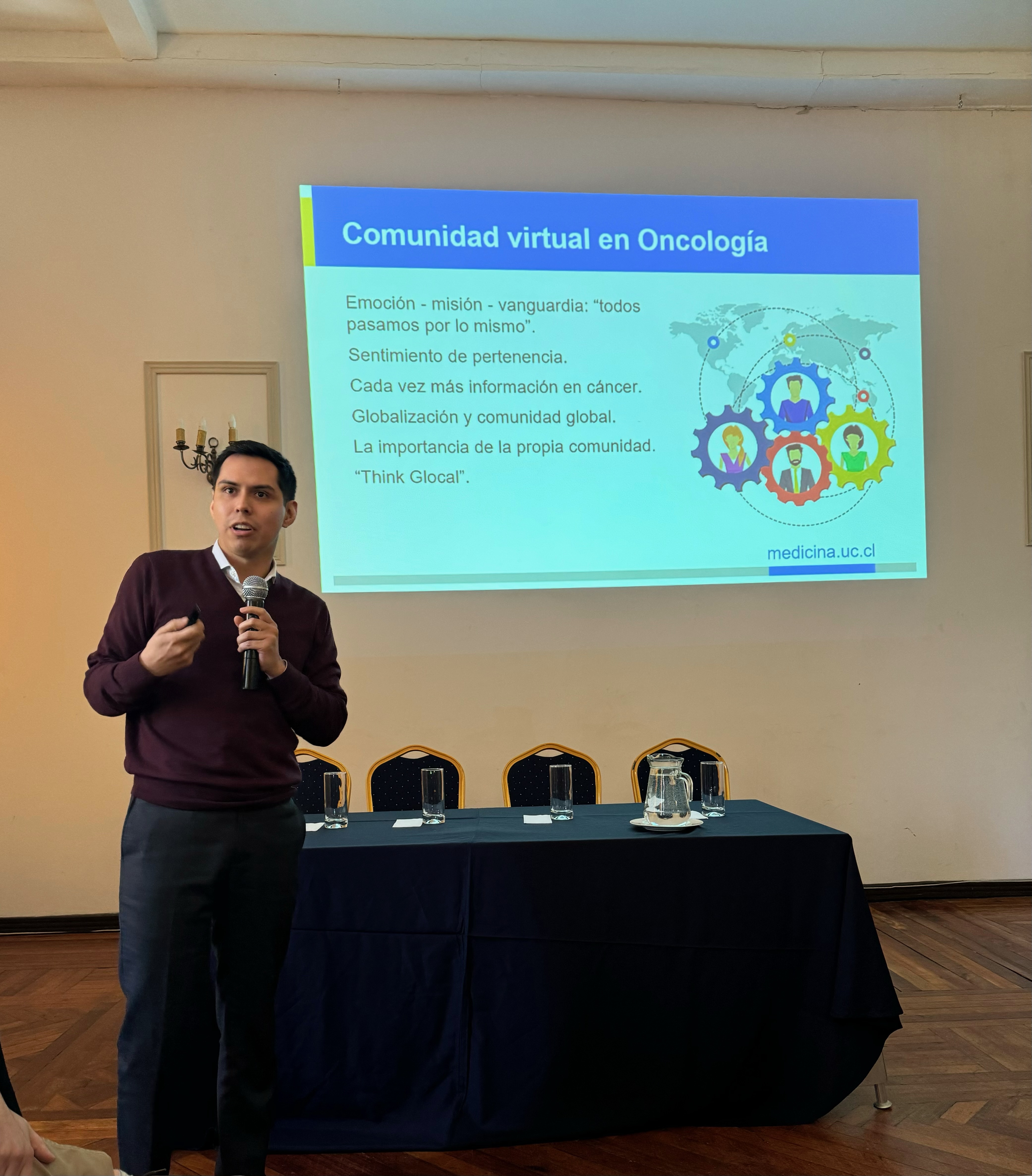 Los doctores Diego Carrillo y Gonzalo Muñoz, oncólogos de UC CHRISTUS, fueron invitados a participar en la Jornada de Oncología organizada por el Hospital de Los Ángeles. Durante su presentación, los especialistas abordaron el impacto de la comunicación y las redes sociales en la oncología, resaltando cómo estas plataformas digitales permiten un intercambio más dinámico de información, tanto entre profesionales como con los pacientes.