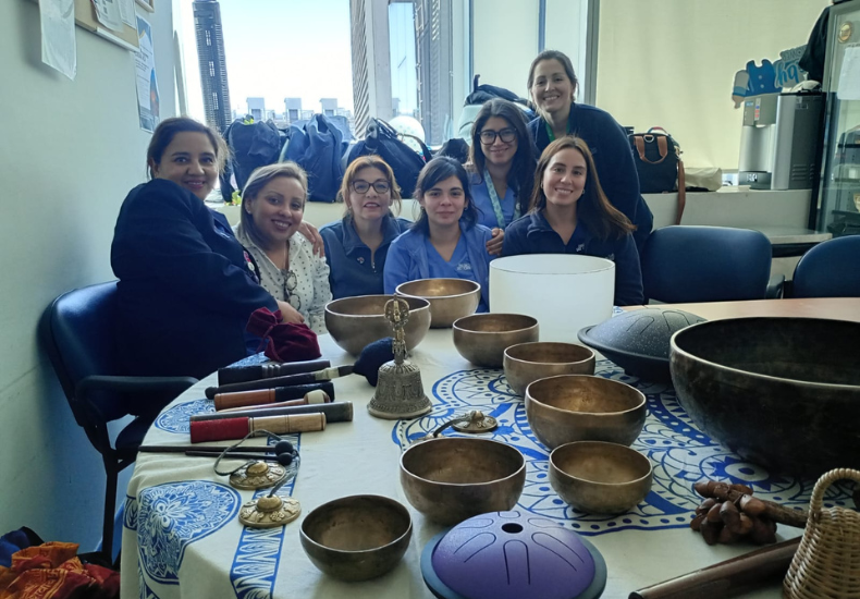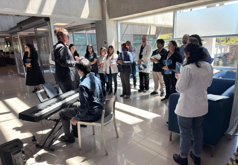 Hubo música en vivo en centros ambulatorios, talleres de cerámica, collage y acuarela, espacios de musicoterapia y la siempre esperada visita de los perros de la Fundación Tregua. La semana comenzó con una emotiva presentación del Coro UC CHRISTUS en el hall central de Clínica San Carlos y concluyó con la formación de nuevos voluntarios en primeros auxilios psicológicos del Programa PARES, iniciativa que busca brindar contención y apoyo a colaboradores que enfrentan situaciones laborales complejas o estresantes.