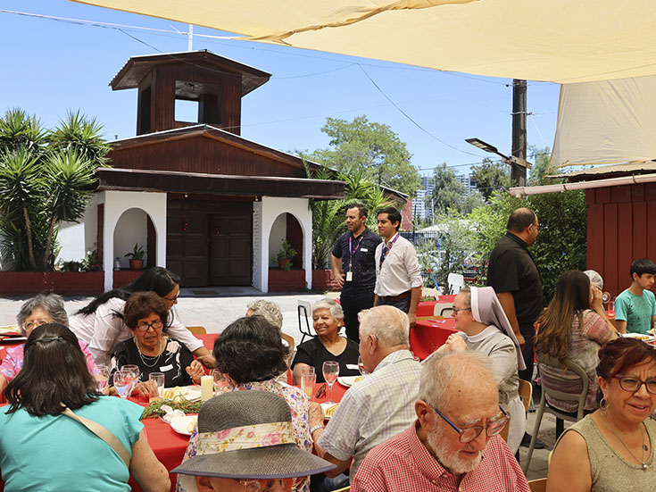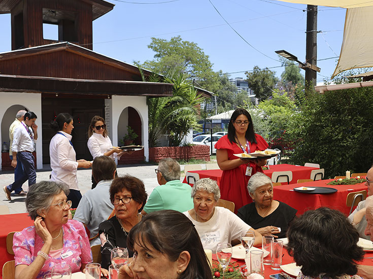 En el encuentro participaron cerca de 90 adultos mayores del sector Villa Olímpica, pertenecientes al territorio de la Parroquia Santa Catalina de Siena, quienes son parte activa de la Capilla Santa Cruz y del Grupo de Adultos Mayores Ignacio de Loyola. Durante el almuerzo, colaboradores UC CHRISTUS y de Sodexo se sumaron como voluntarios, acompañando, sirviendo la mesa y compartiendo conversaciones y sonrisas, en un ambiente cálido y fraterno.