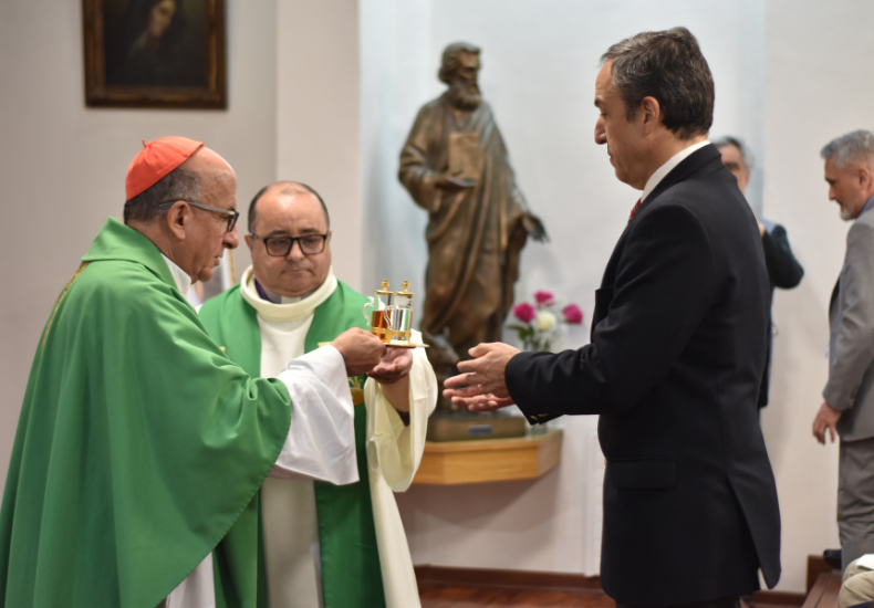 Este 15 de septiembre, en el marco del Día Nacional del Enfermo, se celebró una significativa misa en la capilla del Hospital Clínico UC CHRISTUS, una ceremonia que fue presidida por monseñor Fernando Chomalí y contó con la presencia de destacadas autoridades, como Juan Carlos de la Llera, Rector de la Pontificia Universidad Católica de Chile; Cristián de la Fuente, Gerente General UC CHRISTUS; el Dr. Ricardo Rabagliati, Director Médico UC CHRISTUS; el decano de la Facultad de Medicina UC, Dr. Felipe Heusser; miembros del Directorio UC CHRISTUS, quienes acompañaron a los asistentes en este espacio de oración y esperanza.