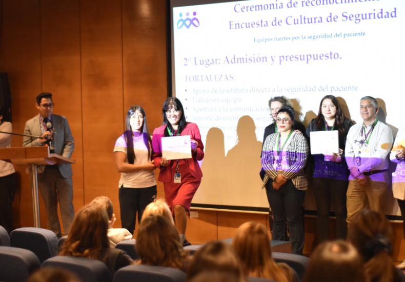 Durante la ceremonia se entregaron medallas y certificados a los equipos que obtuvieron resultados sobresalientes en la Encuesta de Cultura de Seguridad, instrumento desarrollado por la Agency for Healthcare Research and Quality (AHRQ), aplicada anualmente desde 2012 en el hospital. Este año, la base de reconocimiento consideró equipos con siete dimensiones igual o superior al 75% de respuestas positivas, valorando así el compromiso transversal con la mejora.