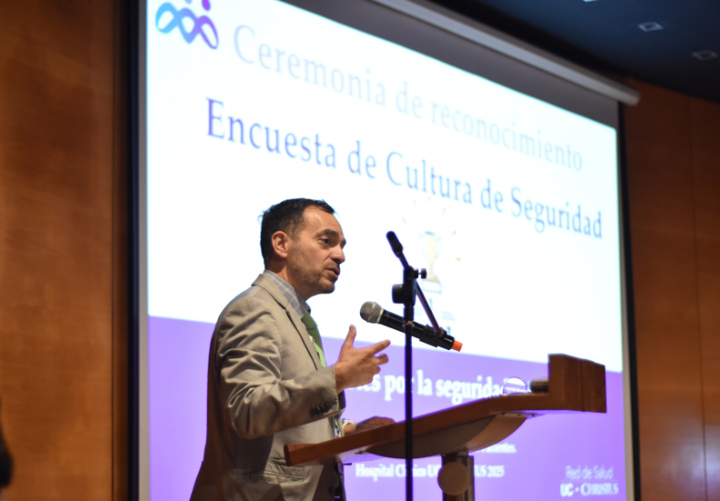 El Dr. Juan Carlos Pattillo, Director Médico del Hospital Clínico UC CHRISTUS, enfatizó en su discurso: “El compromiso de nuestros equipos con la seguridad del paciente es el pilar que nos permite avanzar y mejorar cada día. Reconocer estos esfuerzos es esencial para seguir construyendo una cultura donde la seguridad sea parte de nuestra identidad y práctica diaria”.