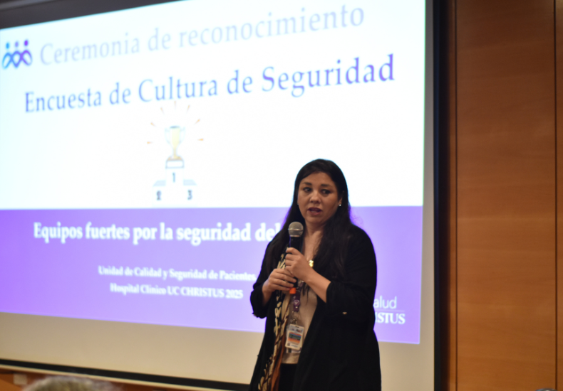 En Hospital Clínico UC CHRISTUS realizó la Ceremonia de Reconocimiento de la Encuesta de Cultura de Seguridad 2025, una instancia en la que se distinguió a equipos clínicos y de apoyo que demostraron un alto desempeño en dimensiones clave como el trabajo en equipo, la comunicación abierta, el reporte de eventos y el aprendizaje organizacional. El evento contó con la presencia de autoridades de la Red, directivos y colaboradores, y tuvo como invitada especial a Javiera Fuentes, seleccionada nacional de rugby femenino, quien entregó los reconocimientos a los equipos destacados.