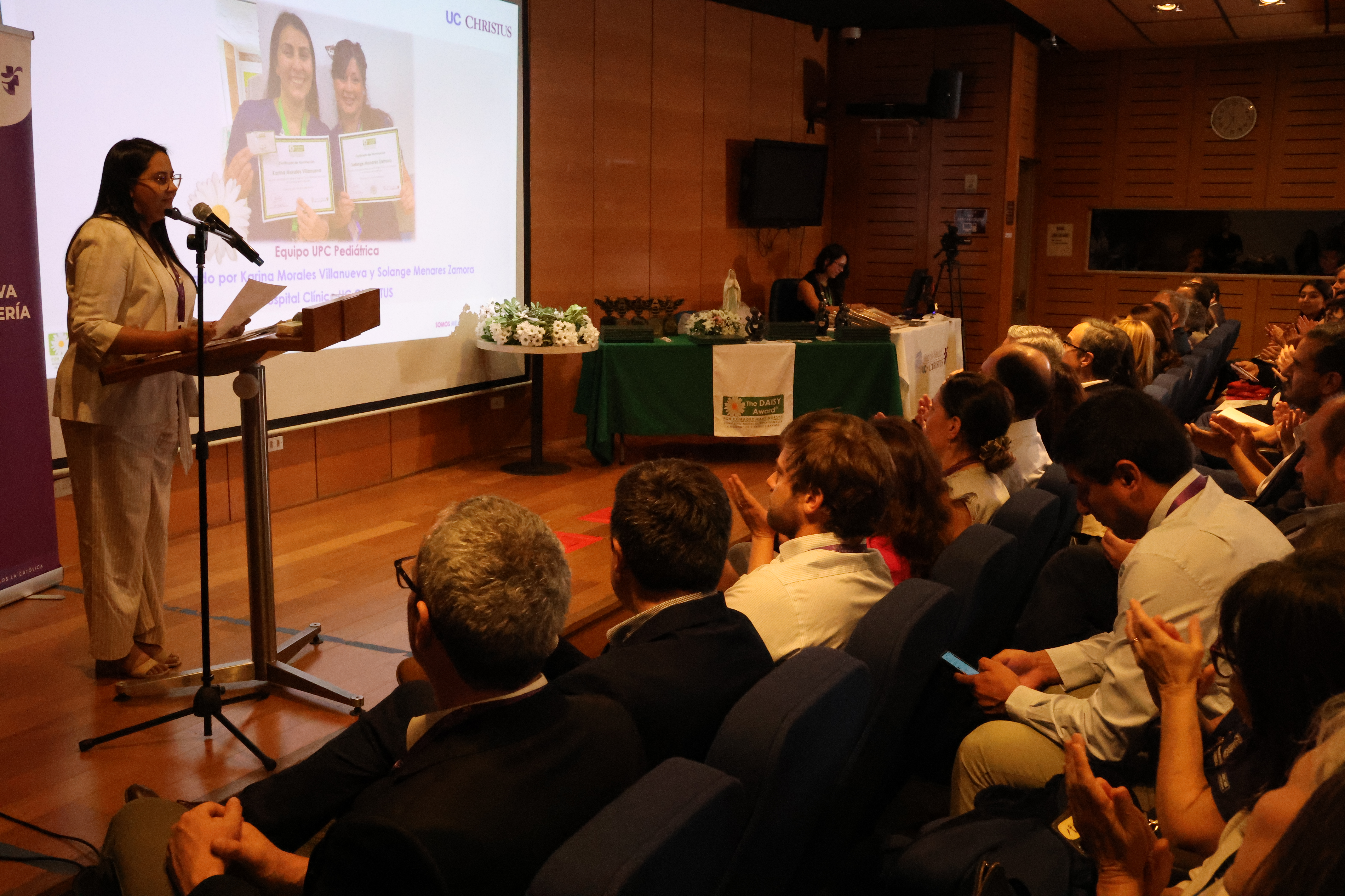 En una emotiva ceremonia, la Dirección Corporativa de Enfermería de UC CHRISTUS celebró la séptima versión de los premios DAISY y la cuarta entrega del BEE Award, un reconocimiento a los colaboradores que destacan por su cuidado extraordinario, basado en valores como la compasión, calidez, cercanía y contención.