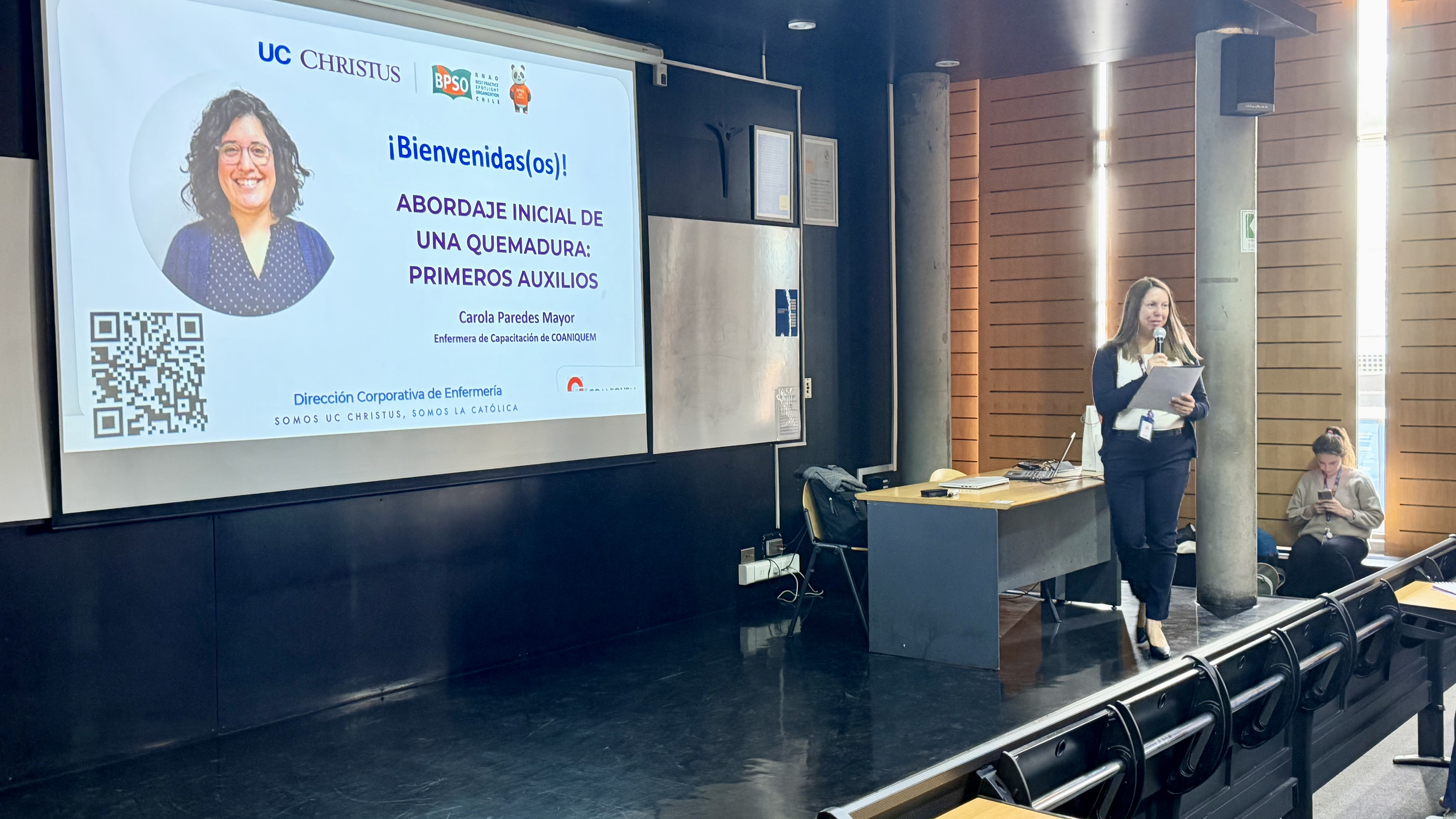 A través de un paso a paso sobre qué hacer frente a una quemadura, y qué prácticas evitar, se desarrolló la instancia dictada por Carola Paredes, Enfermera de COANIQUEM, que dio inicio al ciclo de Capacitaciones Extendidas impulsado por la Dirección Corporativa de Enfermería UC CHRISTUS.