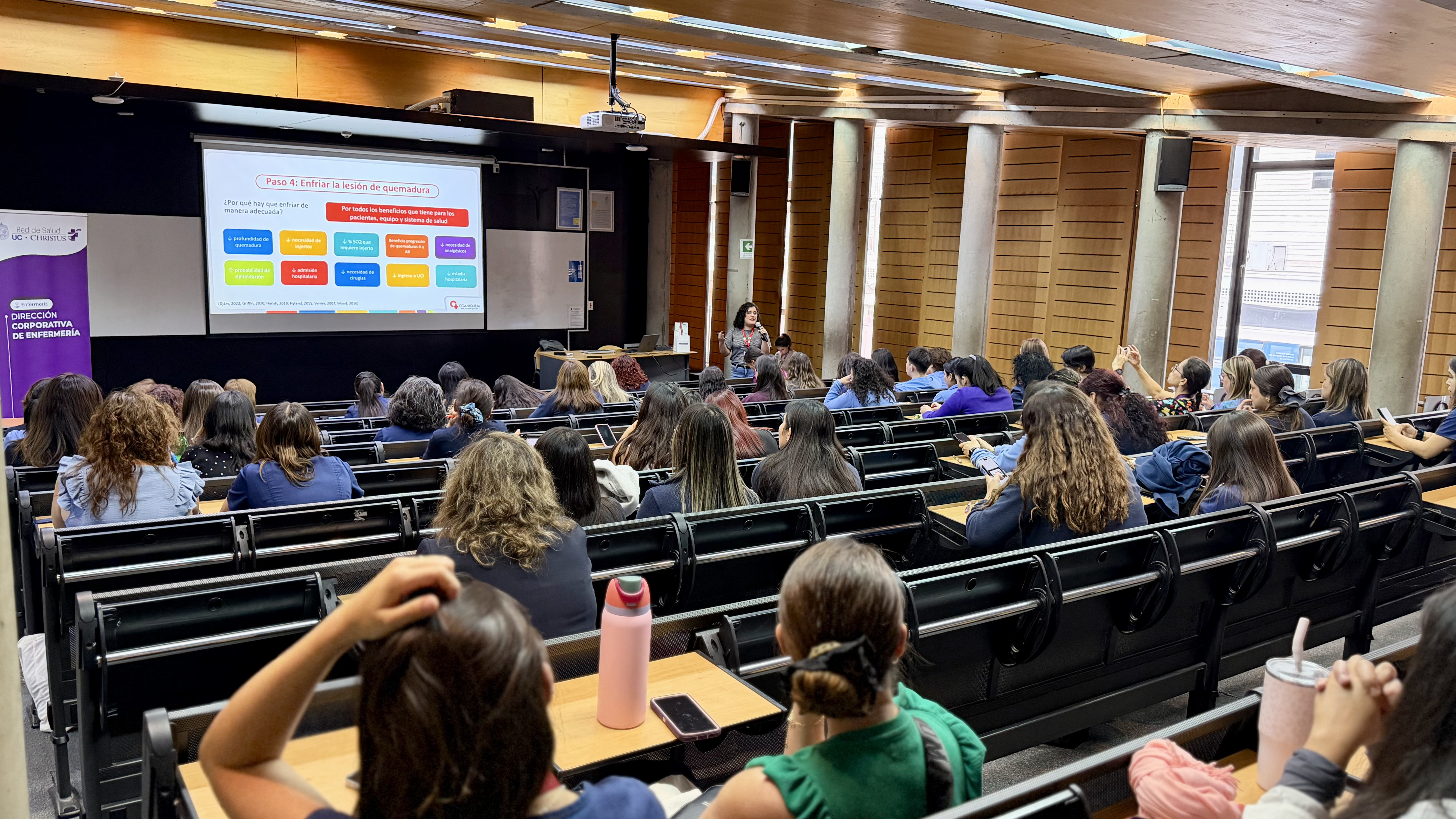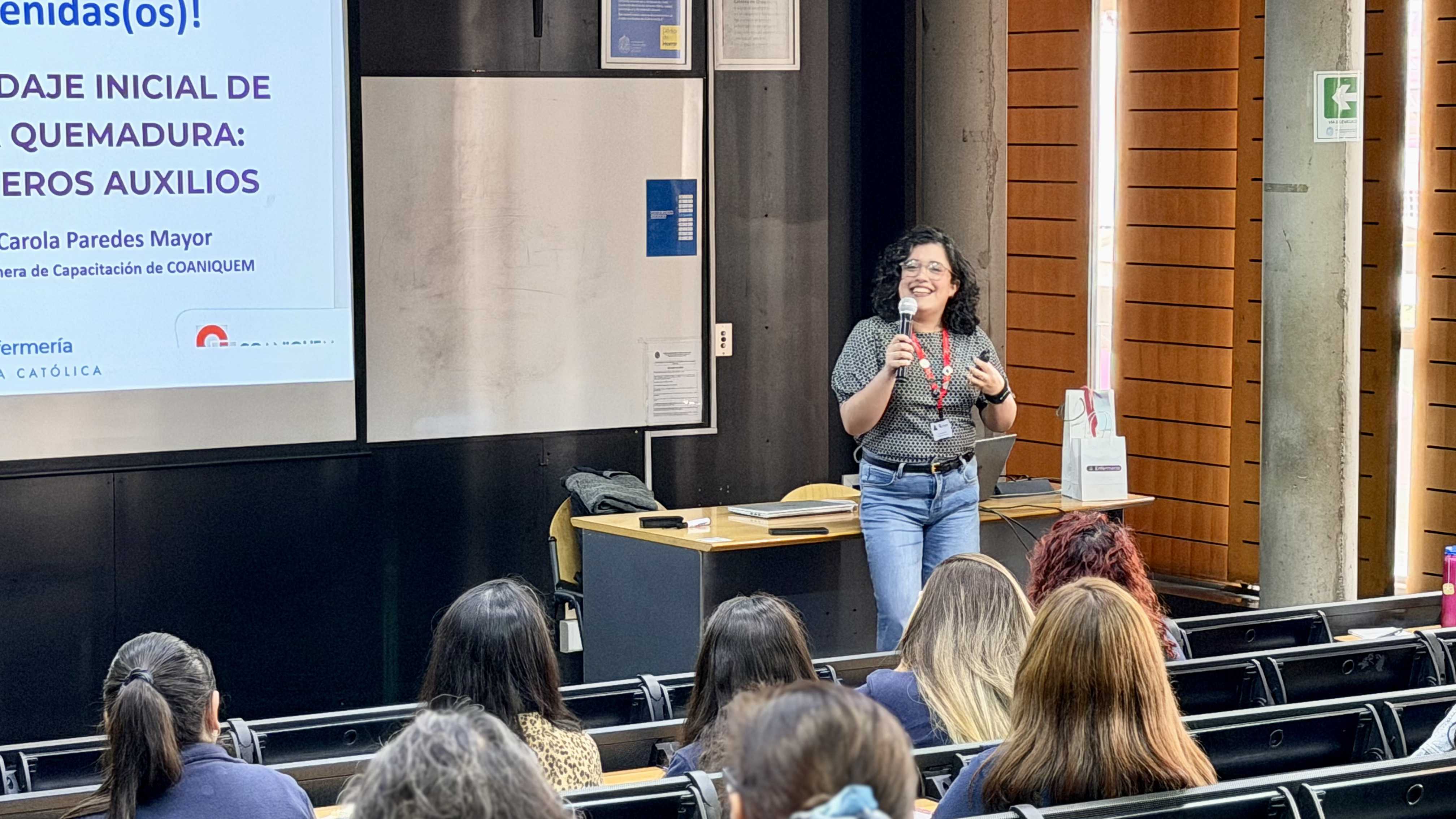 La actividad, realizada el 16 de abril en Casa Central UC, convocó a colaboradores de distintos centros en una jornada orientada a actualizar conocimientos y reforzar el manejo inicial de este tipo de lesiones. “Es muy importante poder compartir esta información, especialmente con personal de salud, para asegurar que frente a una quemadura podamos actuar de manera adecuada, prevenir secuelas y entregar una atención lo más expedita posible”, señaló Carola Paredes, enfermera de Capacitación COANIQUEM.