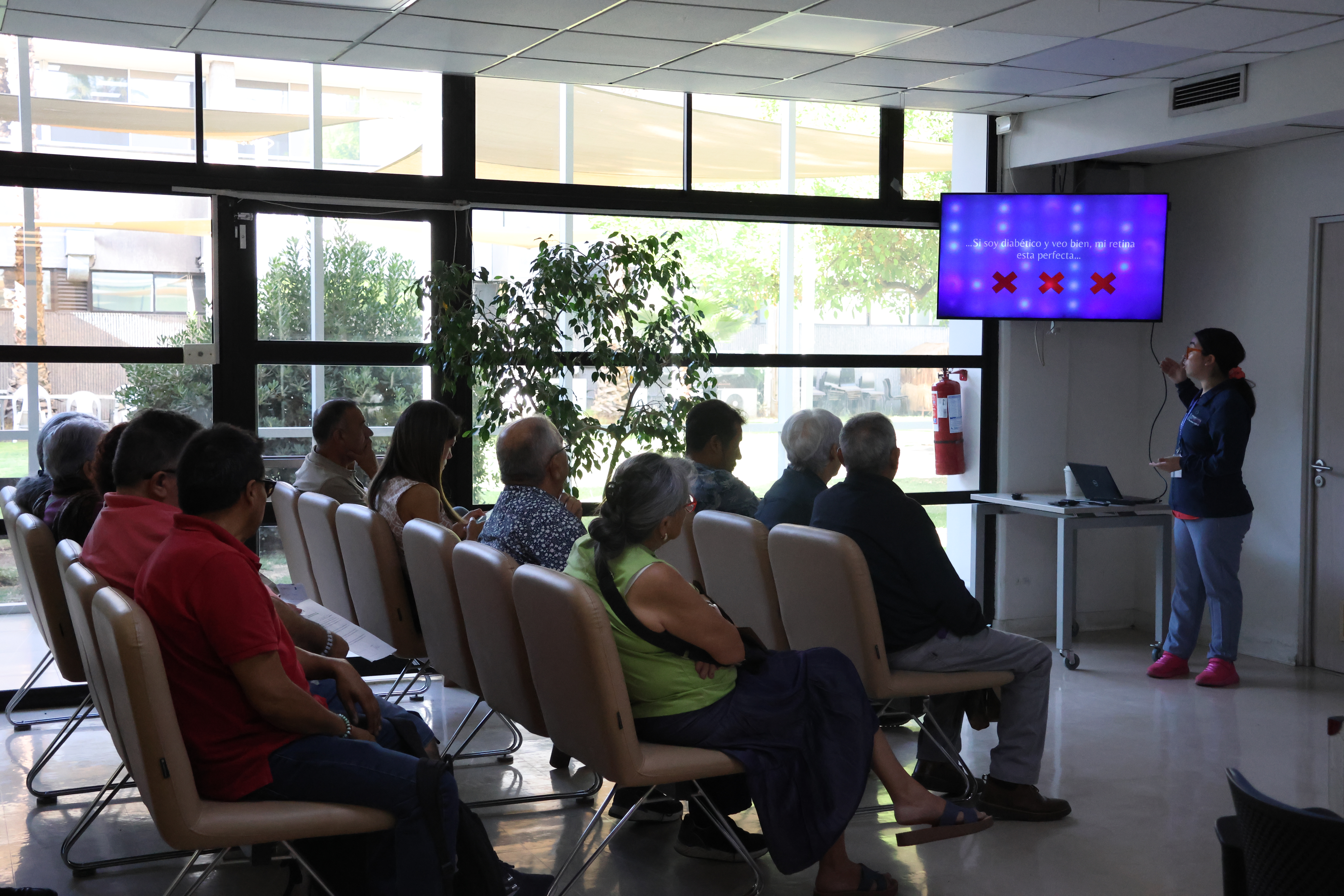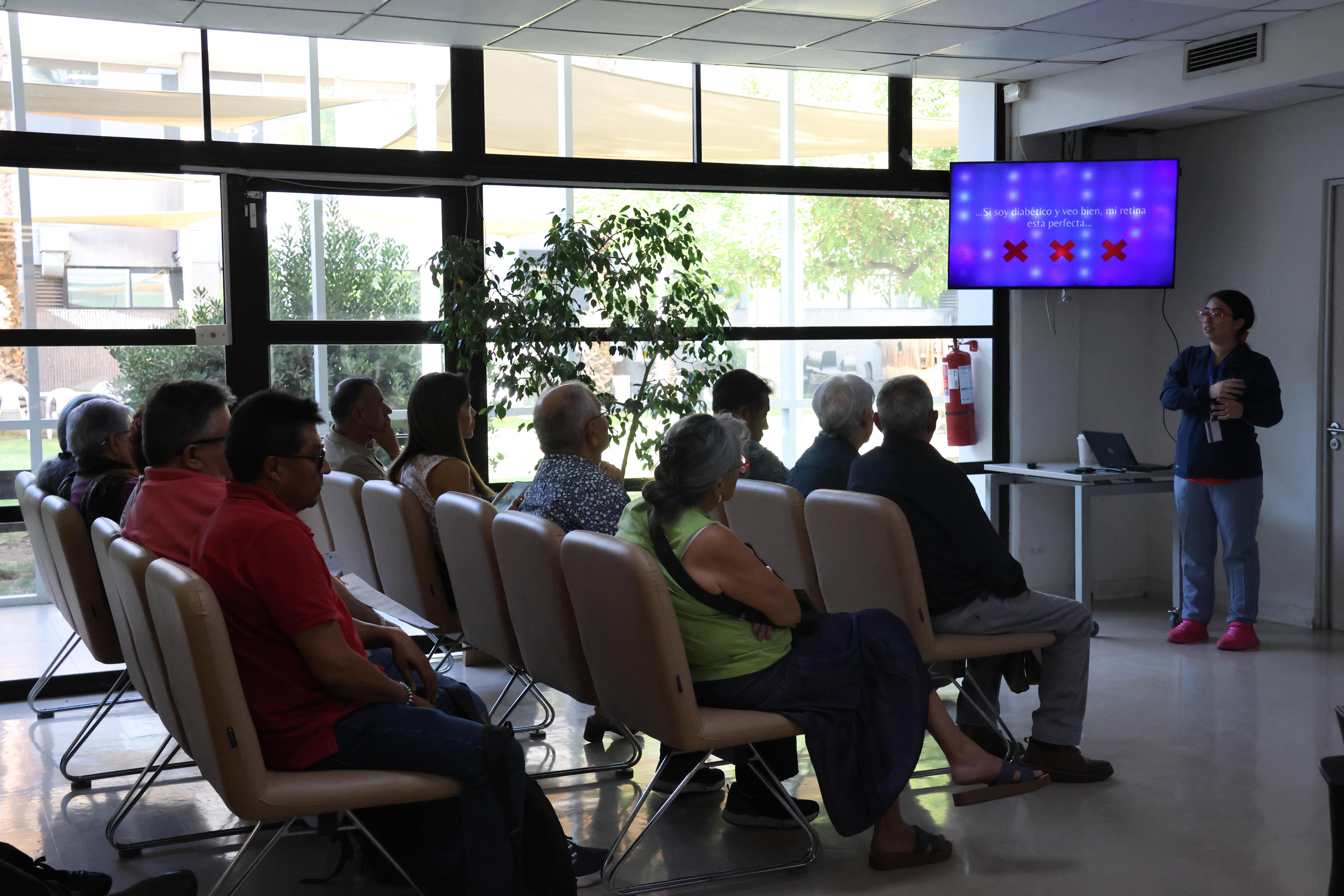 Durante la jornada, los pacientes participaron activamente realizando preguntas y compartiendo sus inquietudes, las que fueron respondidas por las especialistas, generando un espacio cercano de conversación y educación en torno a la salud ocular.
