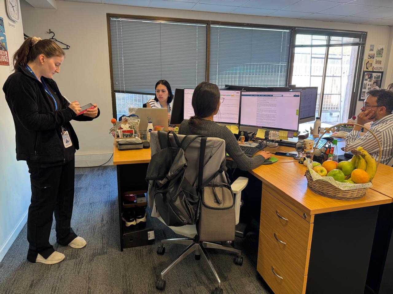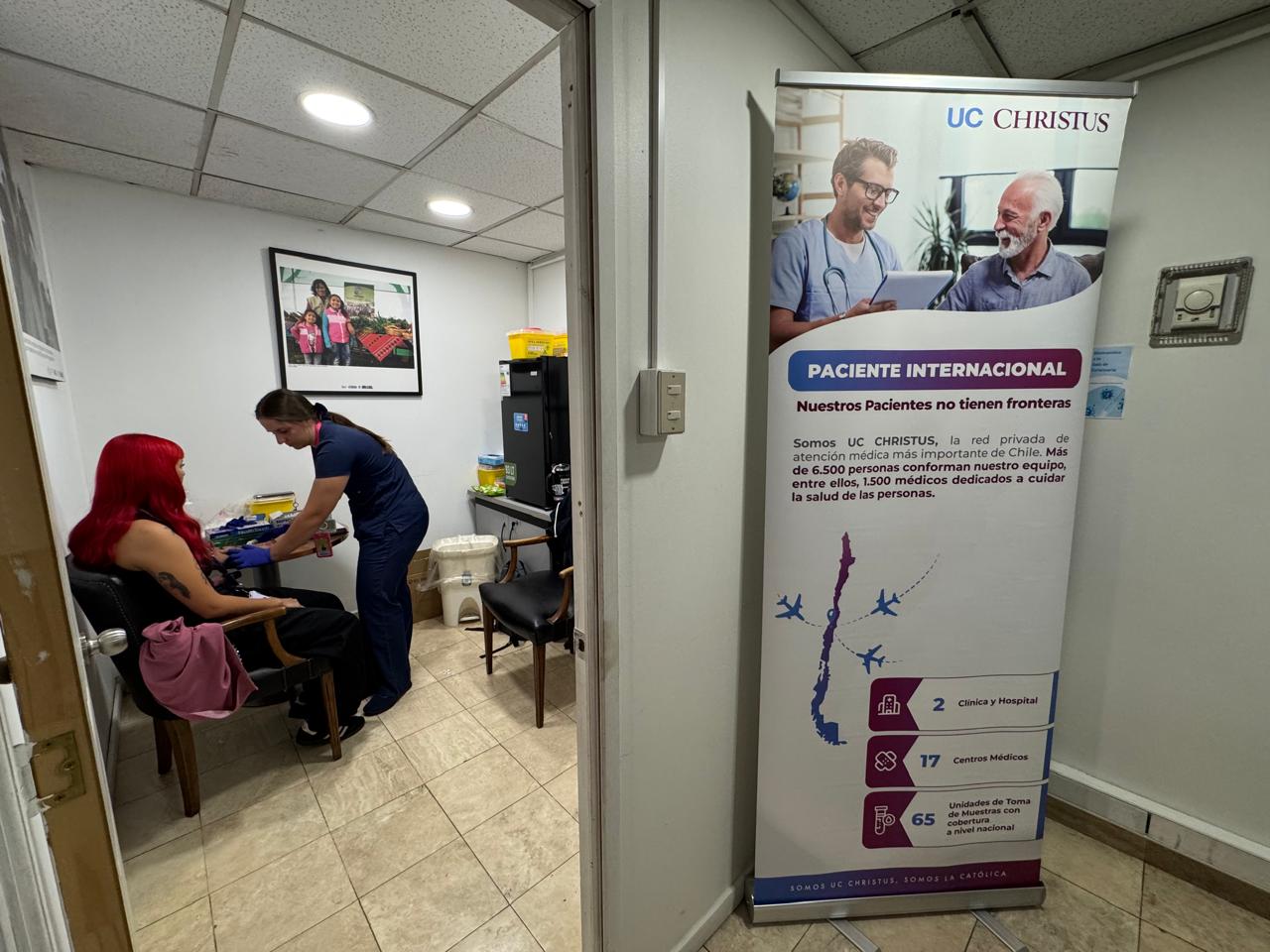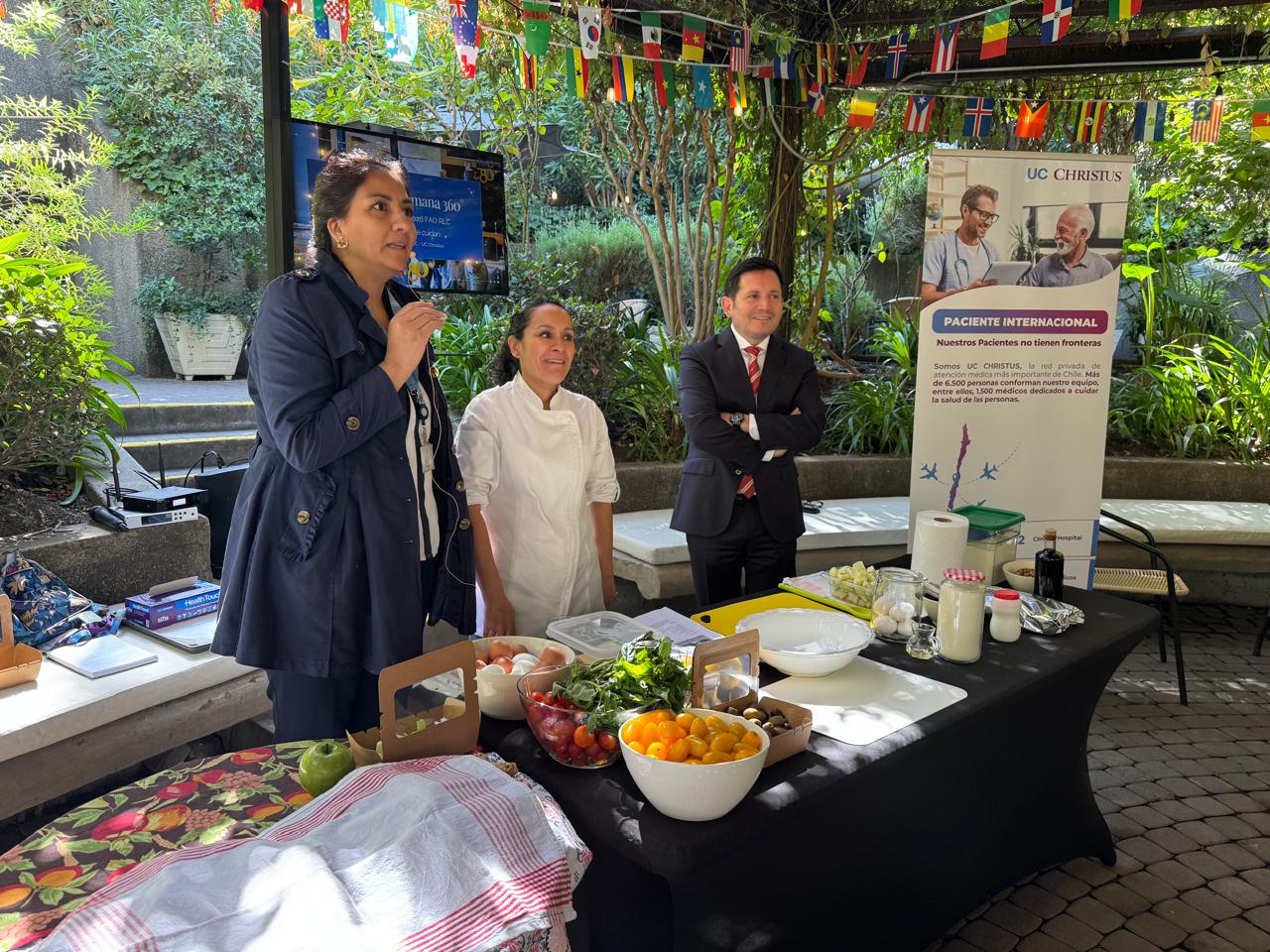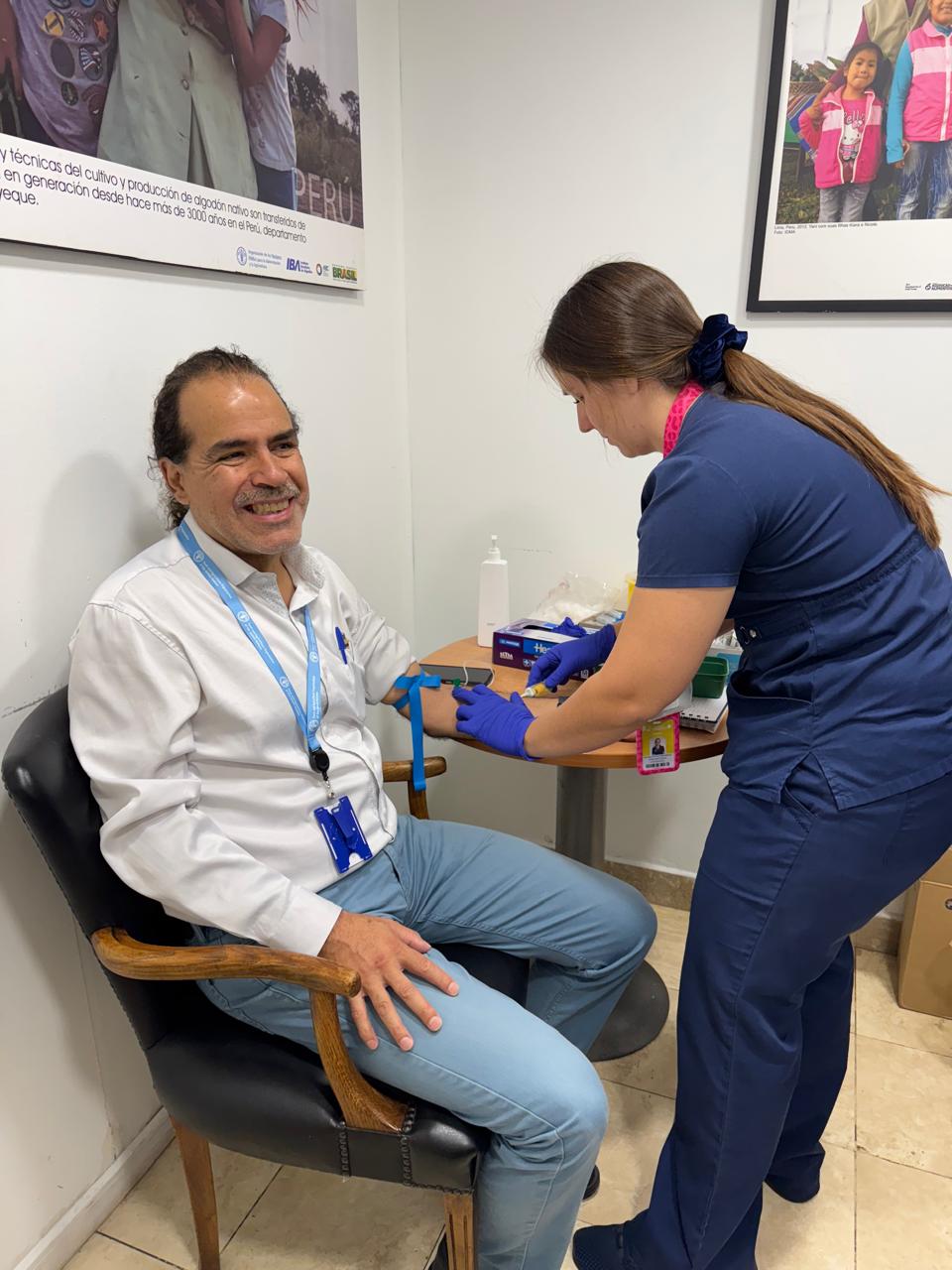 La iniciativa, realizada en las dependencias de la FAO (Naciones Unidas) en Vitacura, Región Metropolitana, fue impulsada por la Unidad de Paciente Internacional de UC CHRISTUS, gestionando con la Unidad de toma de muestra a domicilio- a cargo de Patricio Silva- contando con la participación de Elizabeth Aracena, Ejecutiva Front del Centro Médico San Joaquín y la profesional de enfermería Daniela Polvorín. Además de la realización de evaluaciones kinésicas y una interesante intervención nutricional, reforzando un enfoque integral de atención.