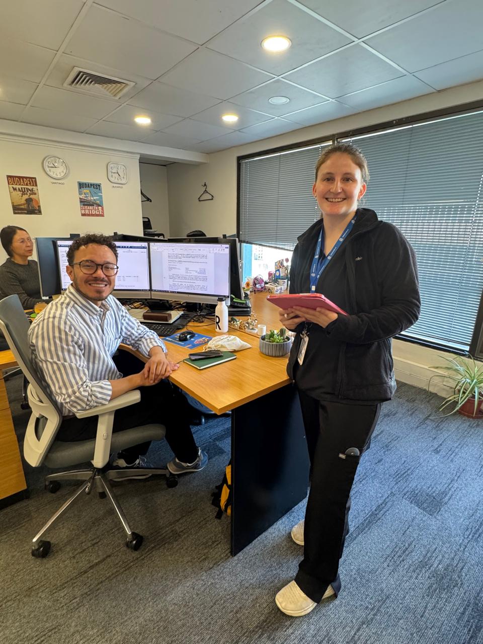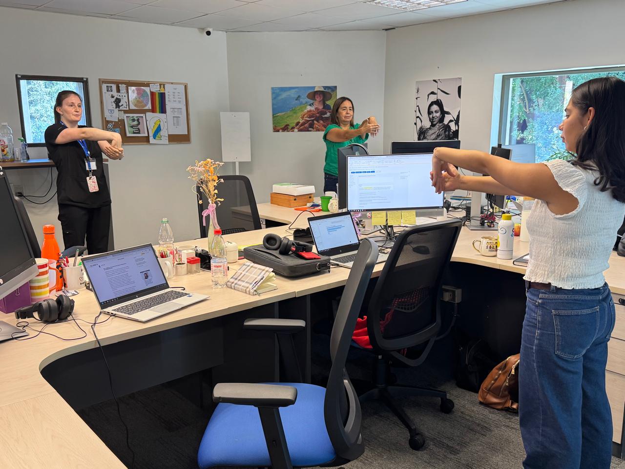 Durante las tres jornadas, se desplegaron distintas acciones de salud. Entre ellas, la Kinesióloga Fernanda Elgueta realizó pausas activas y evaluaciones de ergonomía personalizadas, orientadas a categorizar e identificar factores de riesgo, asociados al trabajo prolongado frente a pantallas.