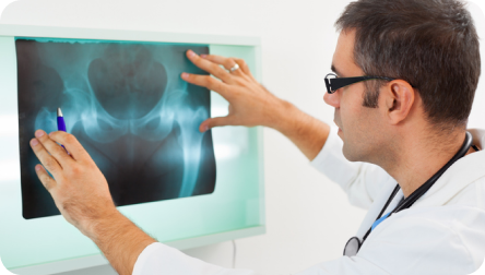 cadera, donde encaja la cabeza del fémur (el hueso del muslo).